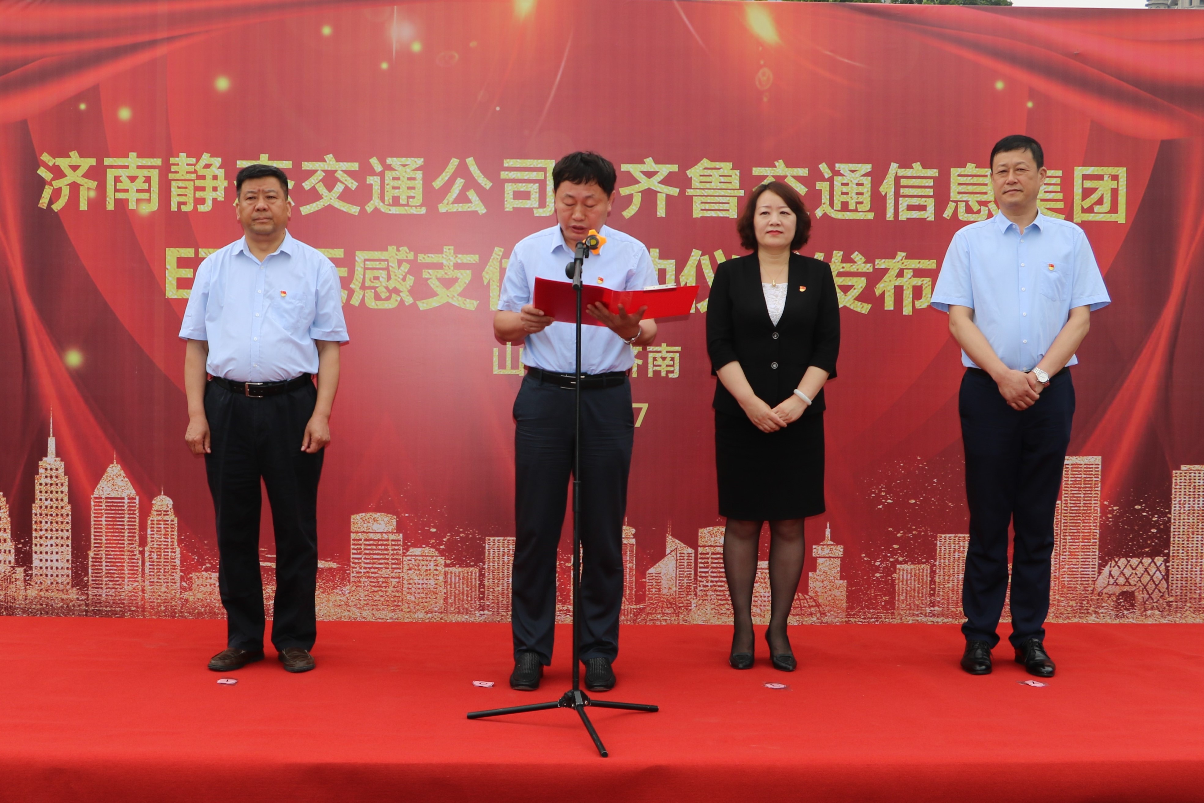 ? ?儀式上,首先由公司黨委書記、董事長(zhǎng)、總經(jīng)理李培鋼與齊魯交通信息集團(tuán)黨委書記、董事長(zhǎng)王月忠致辭,隨后邀請(qǐng)四位領(lǐng)導(dǎo)觸摸開啟啟動(dòng)球,舜耕智能停車場(chǎng)ETC無(wú)感支付正式啟動(dòng)。?
